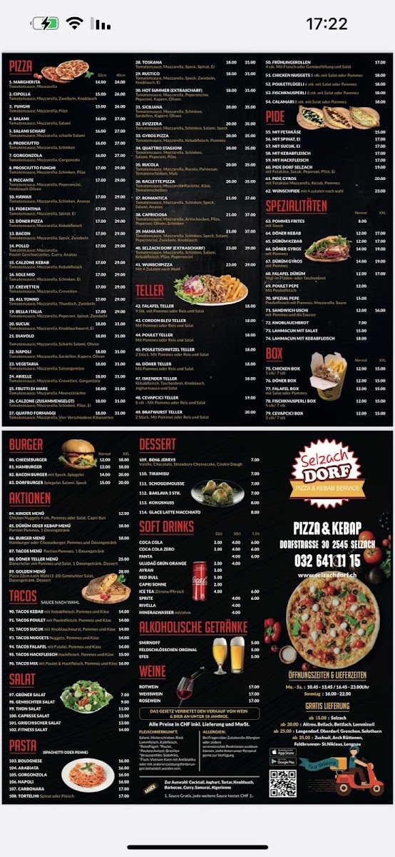 Selzach Dorf Pizza Kebab Service GmbH Menu